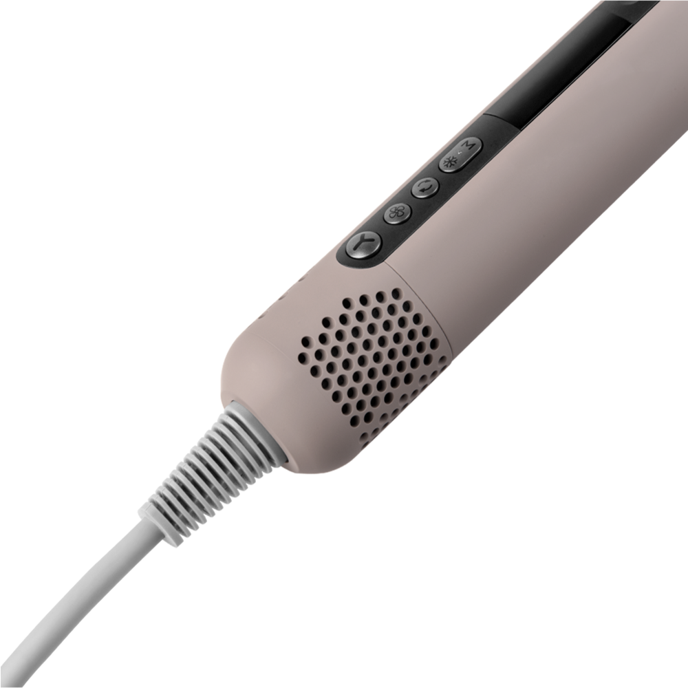 Фен-выпрямитель сочетает в себе передовые технологии укладки и бережного выпрямления волос. Мощный направленный поток создает зону низкого давления, мягко «затягивая» пряди в воздушную прослойку между пластинами. Волосы свободно парят в потоке нагретого воздуха, который ускоряет испарение влаги и одновременно разглаживает кутикулу за счет оптимального натяжения прядей. В отличие от обычных выпрямителей, фен бережно ухаживает за волосами, от корней до кончиков делая их гладкими и послушными, как после салонного ламинирования.